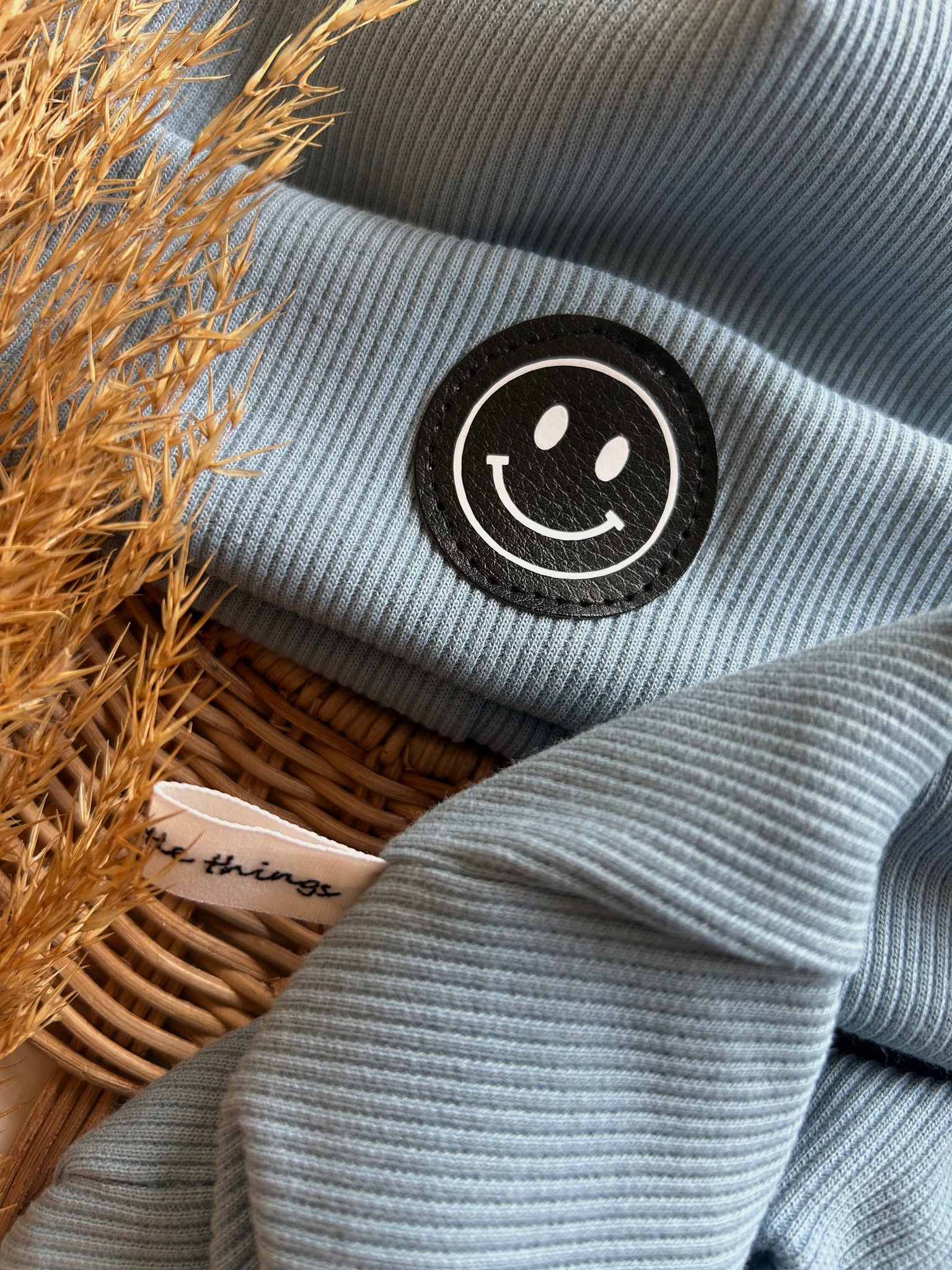 Das Kunstleder-Label mit Namen auf dem Umschlag macht die Mütze zu einem echten Hingucker.
